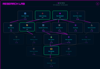 Research persists forever. Every run — even a failed one — feeds your long-term progression.